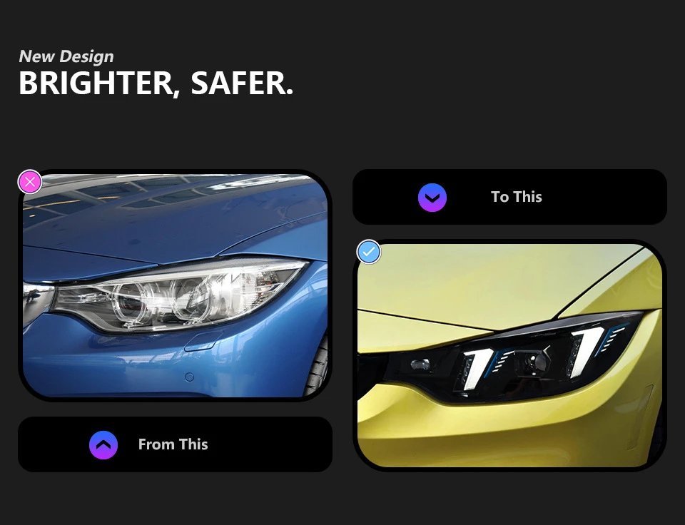 • OEM-style design: Matches the 4 Series’ original headlight aesthetics for a cohesive front-end look