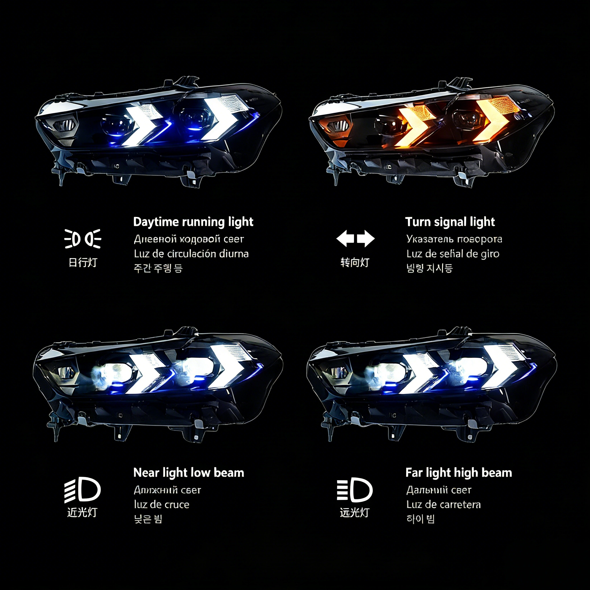 - Dual-color arrow functionality: Transitions between DRL and dynamic arrow turn signals for clear communication