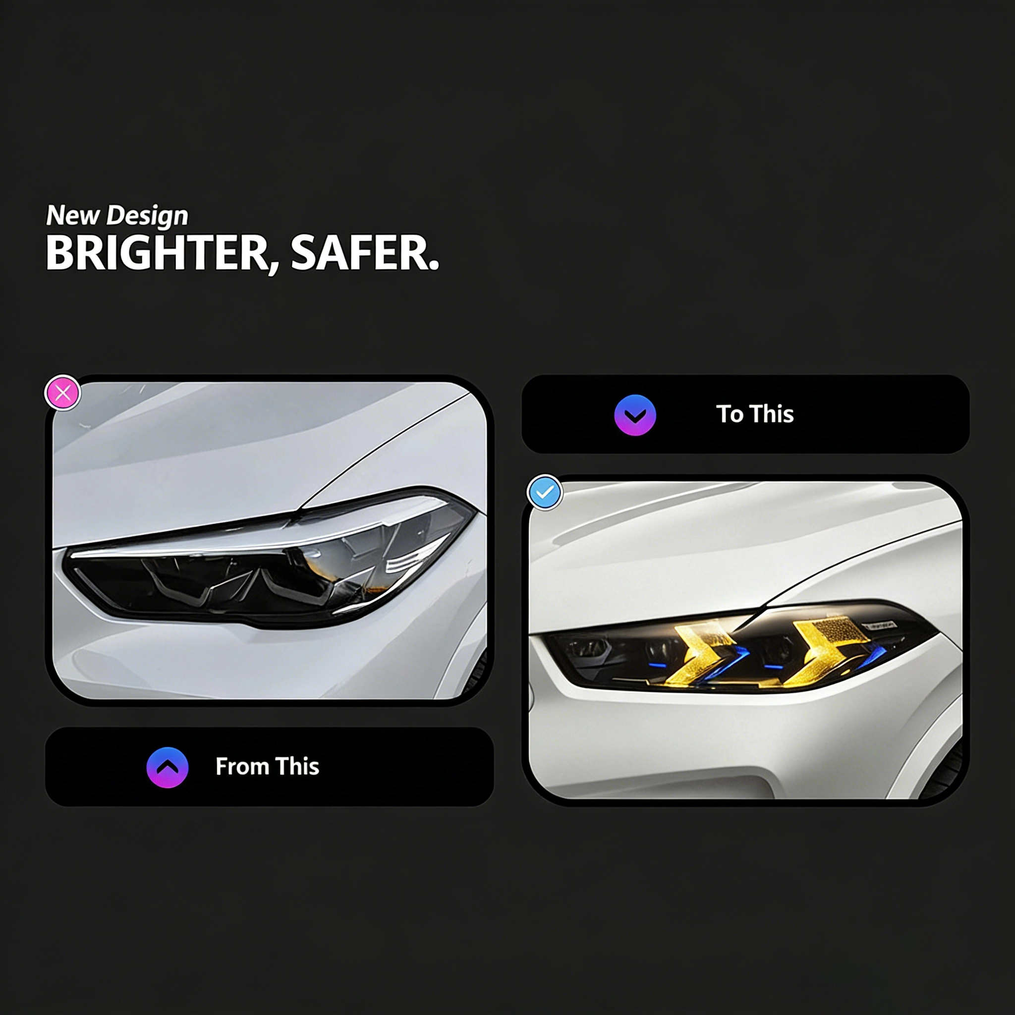 With a brightness range of 3000lm to 6400lm, this LED light outperforms stock units, enhancing visibility for nighttime driving and adverse weather. It integrates DRL (3-17W) and turn signal (15-25W) functions, transitioning between steady DRL and dynamic arrow-style turn signals for eye-catching road communication. Perfect for BMW owners upgrading to modern dual-color styling, replacing worn lighting, or boosting safety, this BMW dual-color arrow LED balances compatibility, durability, and dynamic visual appeal.