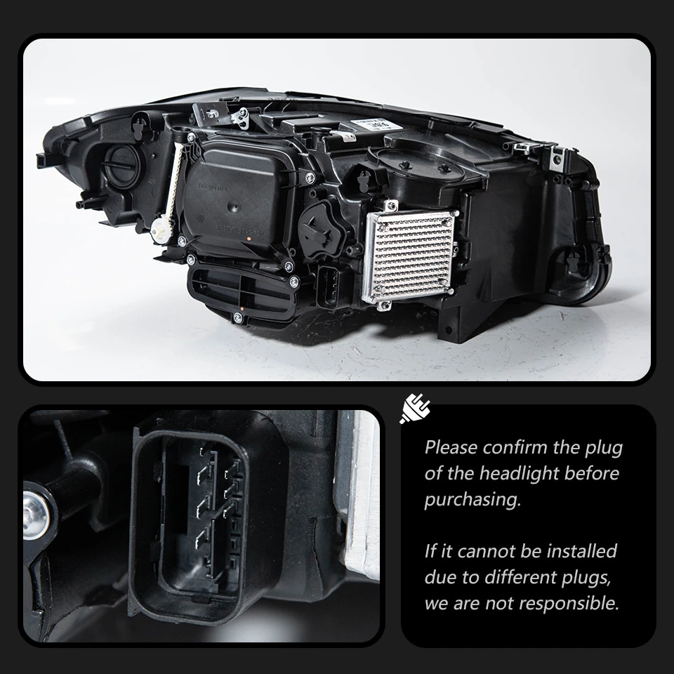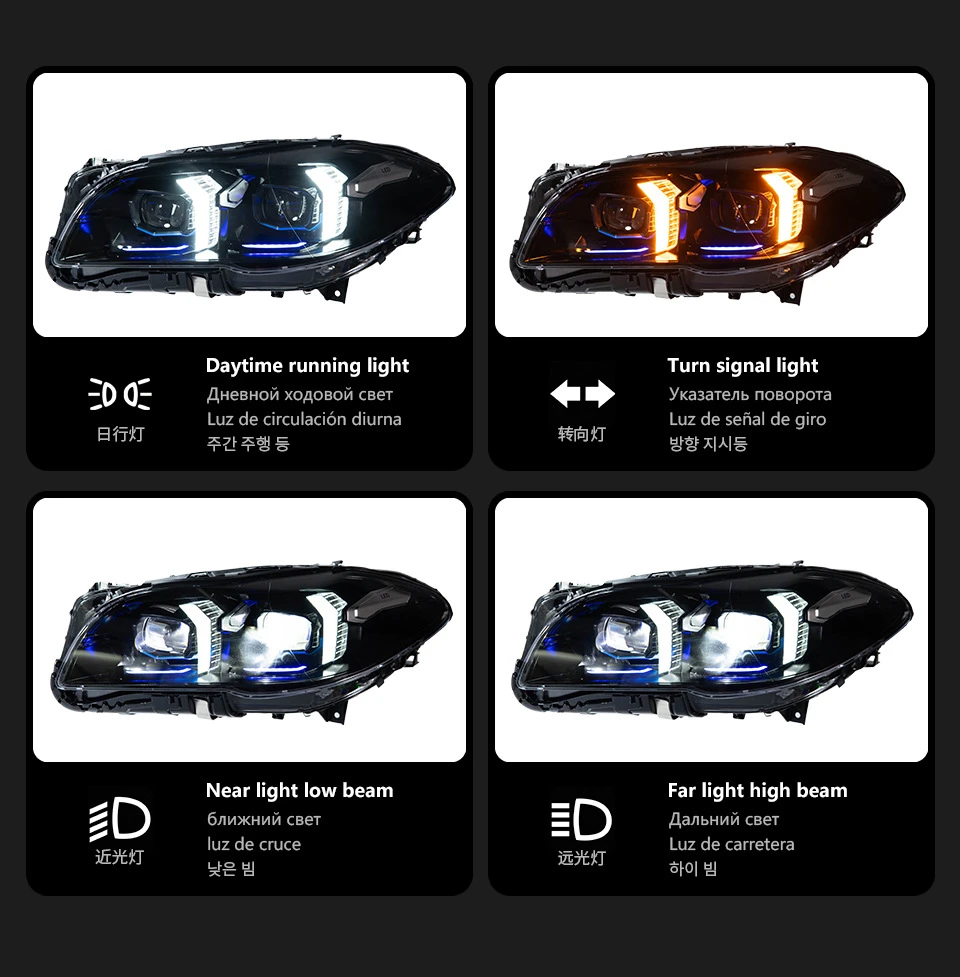 With a brightness range of 3000lm to 6400lm, this headlight outperforms dim factory units, enhancing visibility for nighttime and adverse-weather travel. It also includes built-in DRL (3-17W) and turn signal (15-25W) functions, combining core lighting performance with essential safety features. Whether replacing worn headlights, restoring damaged units, or upgrading to brighter illumination, this BMW F18 headlight balances OEM compatibility, durability, and versatility to elevate the 5 Series F18’s driving safety and front-end styling.