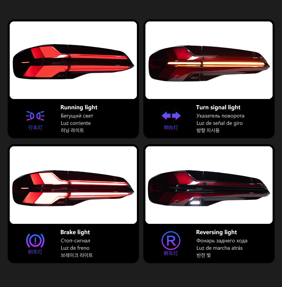 The BMW LED tail lights are a premium rear lighting upgrade engineered exclusively for BMW models, blending the brand’s iconic styling with modern LED performance and safety features. As specialized BMW LED tail lights, they operate on a standard 12V automotive voltage, ensuring seamless integration with BMW’s OEM electrical system—no complex modifications required. Featuring a vibrant red running light with an eye-catching start animation (for enhanced rear visibility), a bright LED white reversing light (for low-light backup safety), and a road-compliant yellow/amber turn signal, these tail lights meet BMW’s design and global safety standards.