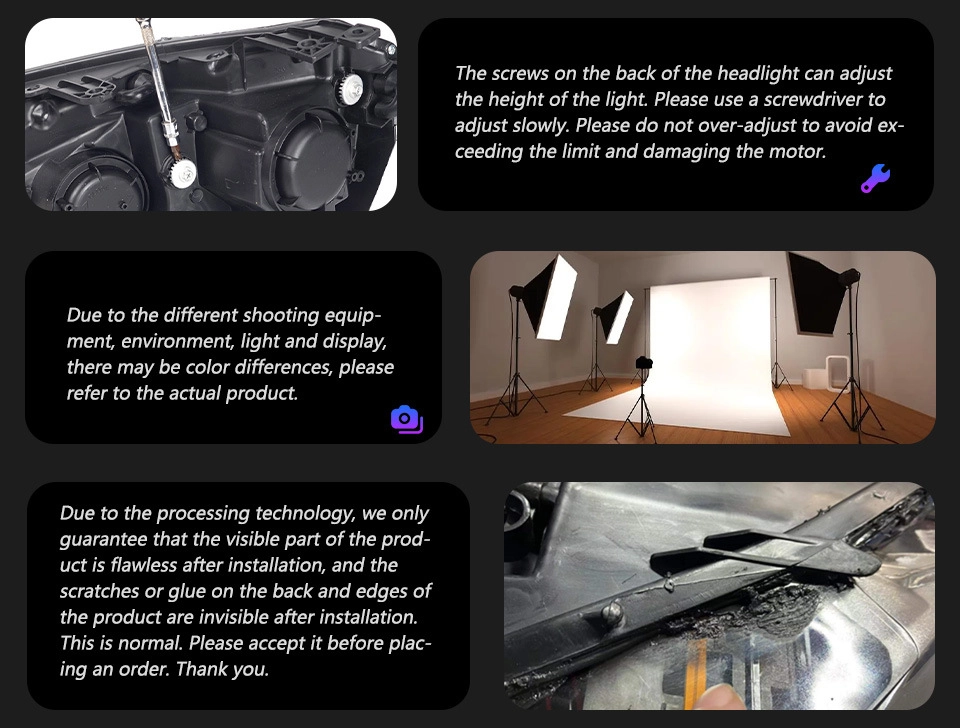 • Customized products (e.g., special-spec headlights): Processed within 7-15 business days (specific time will be confirmed in the order contract)