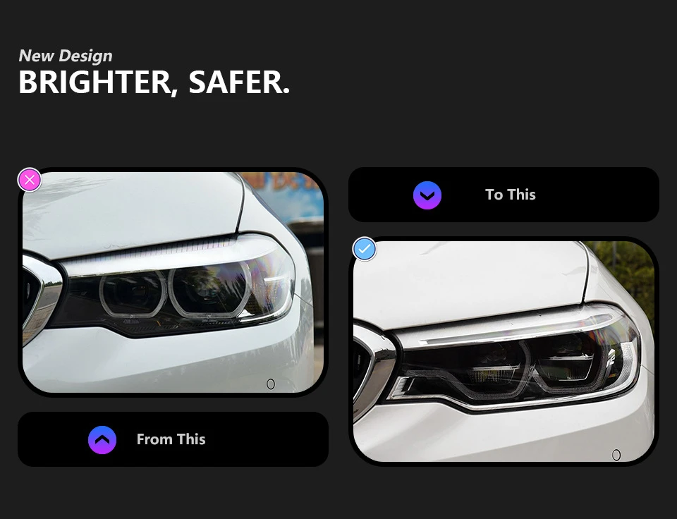 - OEM-style design: Matches the G30’s original headlight aesthetics for a cohesive front-end look