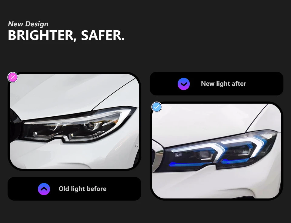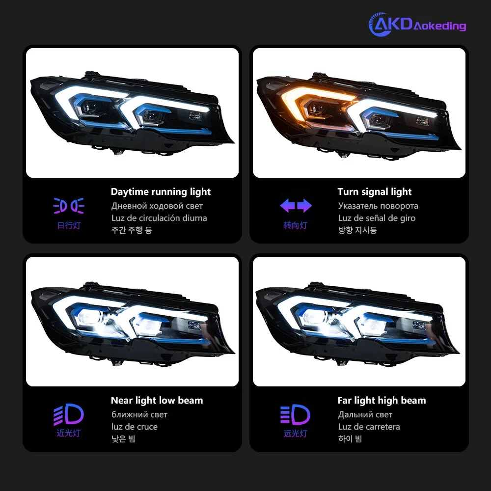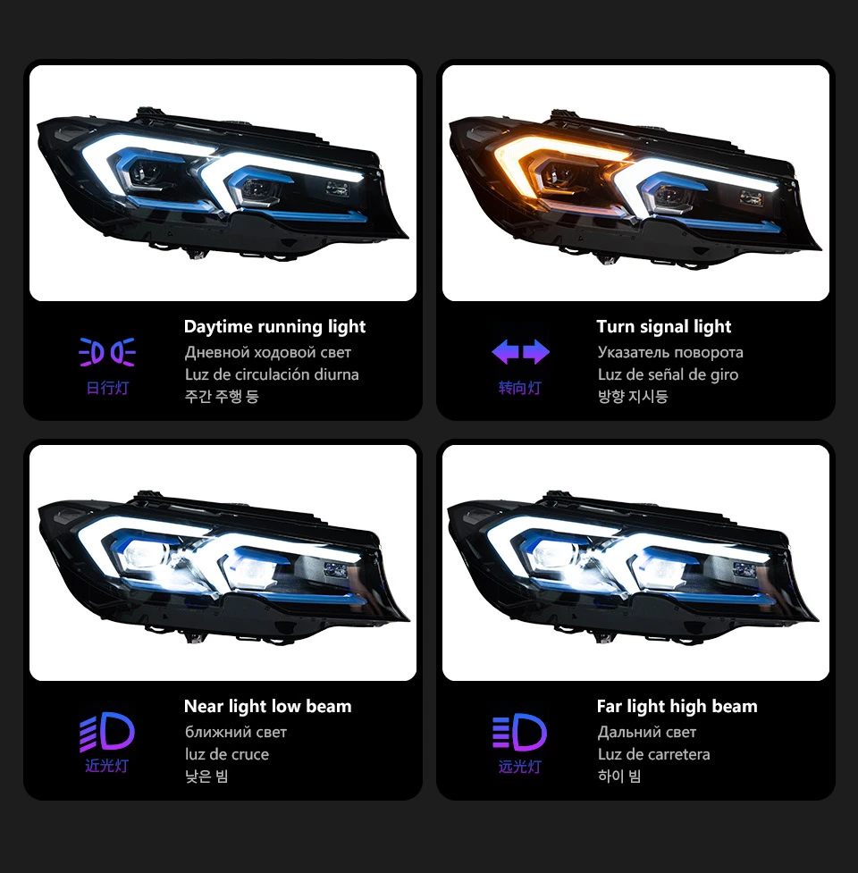 Suitable for 2019-2022 BMW 3 Series G20_G28 Modified Blueberry LED Projector Headlights with Daytime Running Lights and Sequential Turn Signals